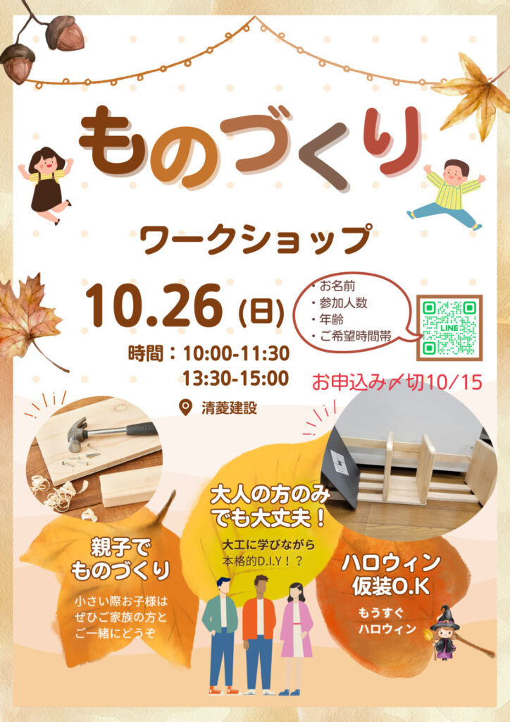 昨年同様、涼しくなってきました10月に『木工教室』開催 いたします 😉
